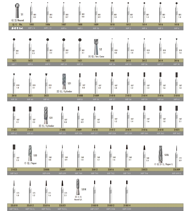 KEXIN Dental Lab Products HP Carbide Bur Shaping fissure on a variety of materials. Used on gold, composite veneers or ceramics prior to final firing, they always display convincing cutting proper and an impressively long service life. Prophylaxis and oral surgery; Preparation of cavities; Removal of old fillings; Treatment of filings; Preparation of crowns Also used as engraving bits, carving bits.
