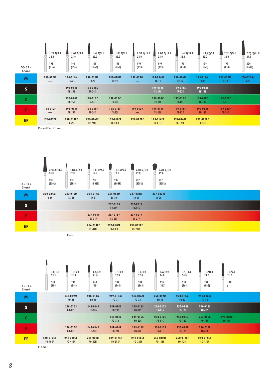 Dental Diamond Bur FG 1.0-1.8mm Shank Inverted Tapered SI High Speed Polishing Instrument classification : Class II Place of Origin : Guangdong, China Brand Name: Kexin Model Number: ISO010 & ISO225 Power Source: Electric Shelf Life : 3 years Quality Certification: CE0197 & ISO13485 Product name : Diamond Burs Place of Origin: China Brand Name: Kexin Type: FG Burs Shape: Inverted Conical SI Grit: Super Coarse/Coarse/Medium/Fine/Extra Fine Application: Dental Areal MOQ: 10pcs/pack Usage: Dental burs for high speed handpiece OEM: Accept OEM