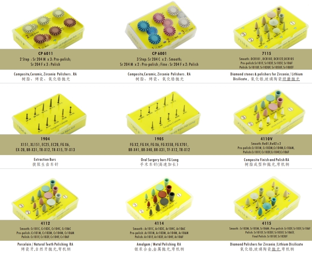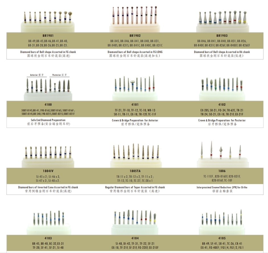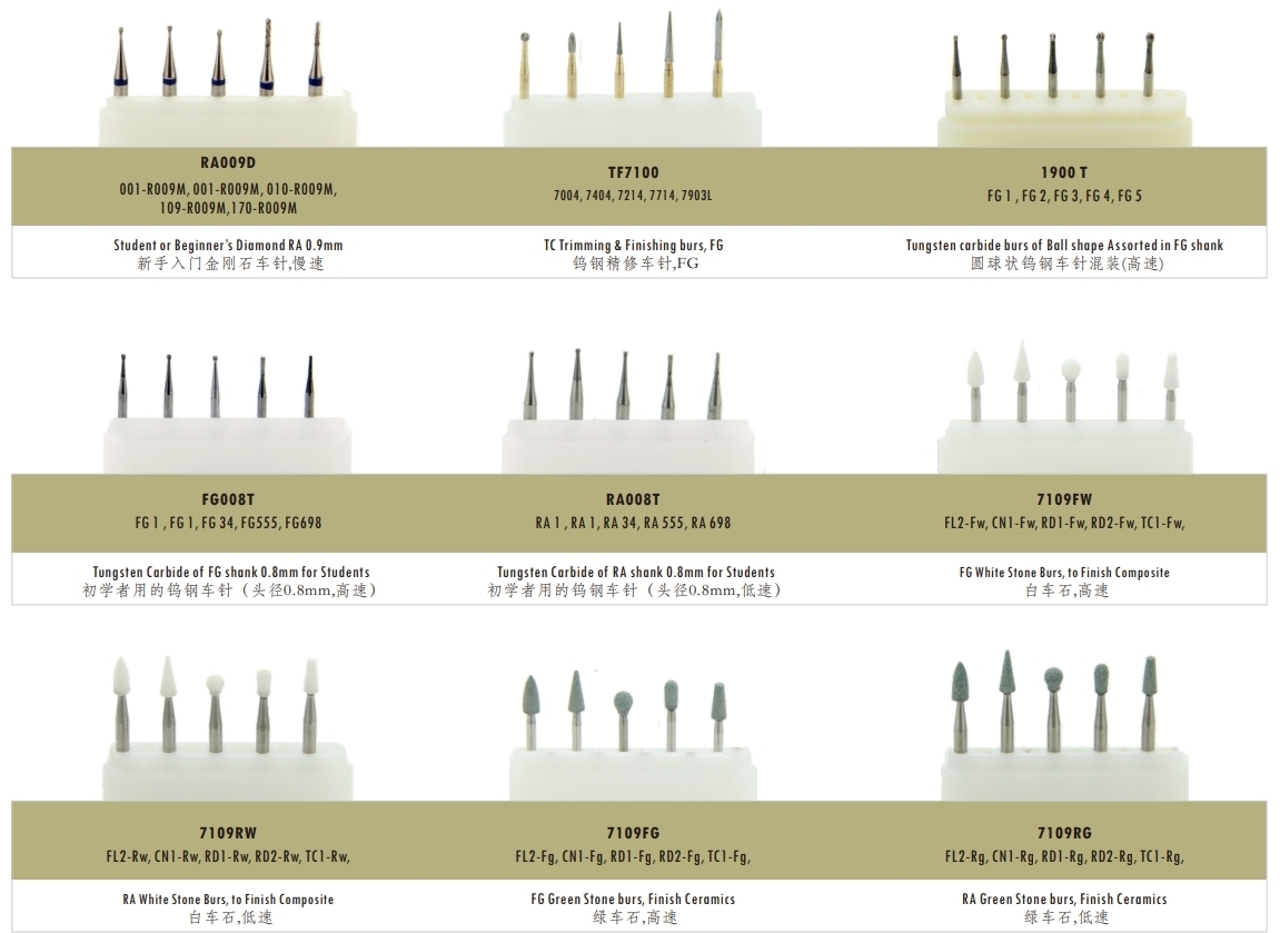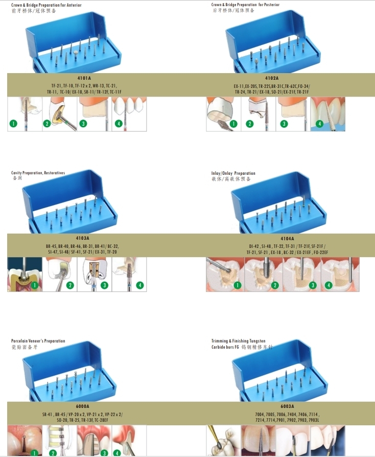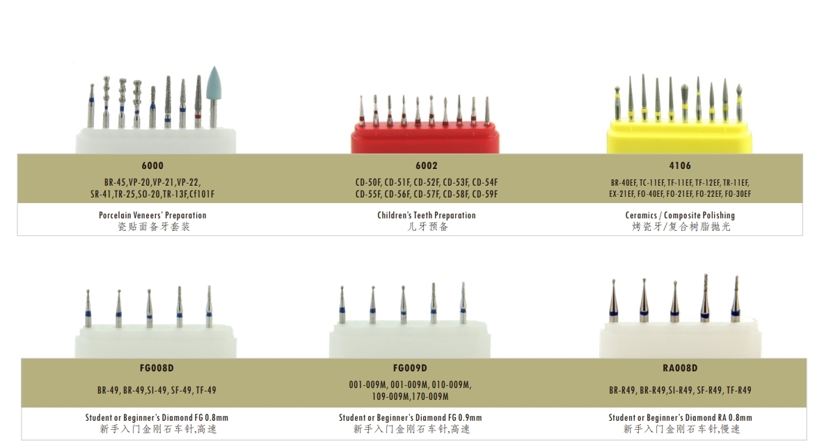 ● Our FG/RA CE certified dental carbide drill set, designed for high/low-speed grinding.