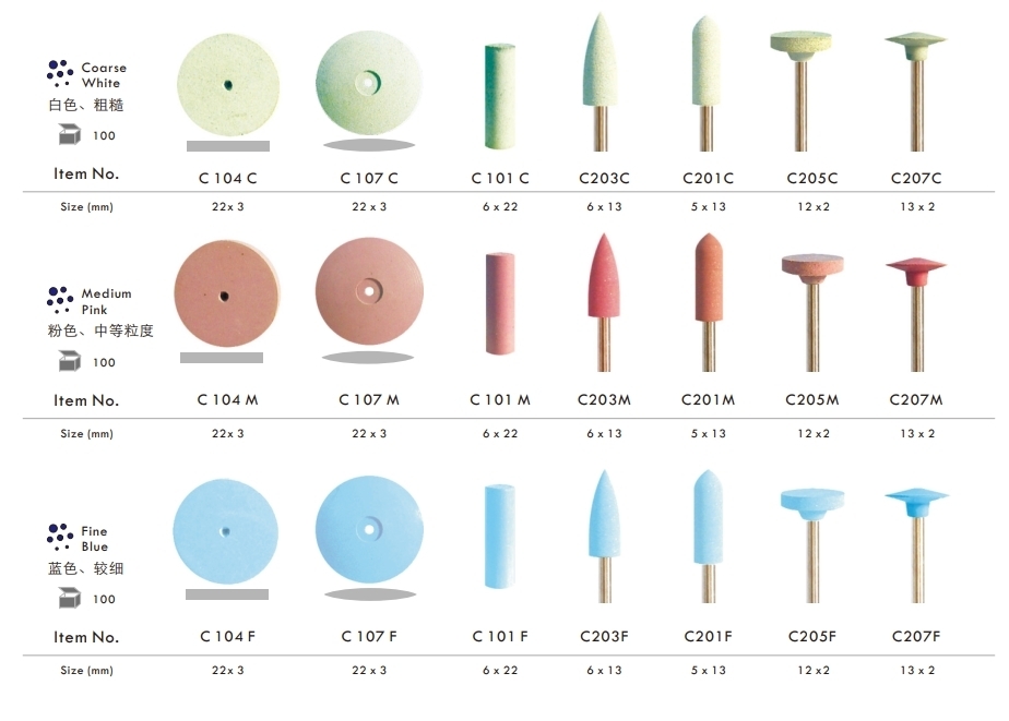 Dental Composite Resin Polishing Wheels and Diamond Impregnated System for Lab Tools Standard RA / CA shank burs (ISO 204, right angle / contra angle, diameter 2.35mm, for low speed dental handpiece)